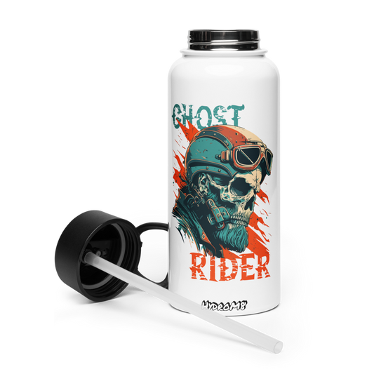 HydroM8 – Ghost Rider nerūdijančio plieno vandens butelis su šiaudiniu dangteliu