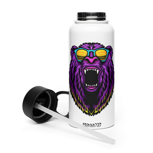HydroM8 "Angry Gorilla" Nerūdijančio plieno vandens butelis su šiaudiniu dangteliu