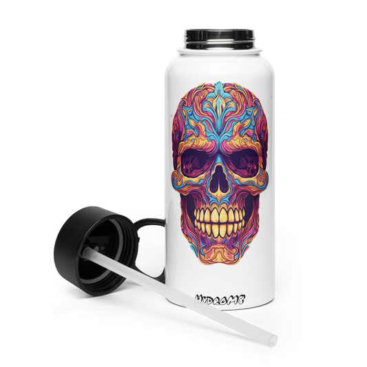 HydroM8 "Punk Skull" Nerūdijančio plieno vandens butelis su šiaudiniu dangteliu