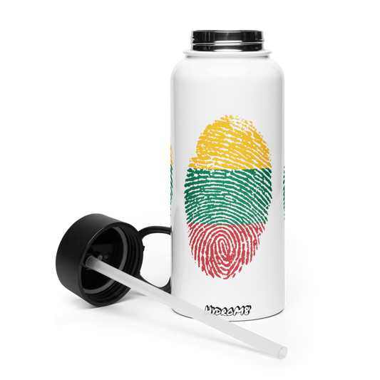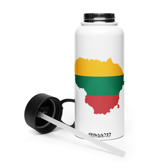 HydroM8 - Lietuva Country Nerūdijančio plieno vandens butelis su šiaudiniu dangteliu