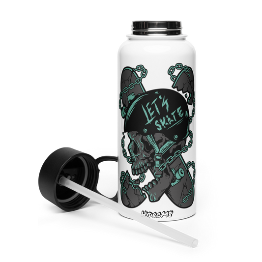 „HydroM8 Skull“ – „Let`s skate“ nerūdijančio plieno vandens butelis su šiaudiniu dangteliu