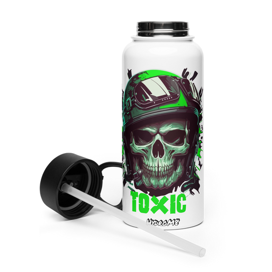 HydroM8 "TOXIC SKULL" Nerūdijančio plieno vandens butelis su šiaudiniu dangteliu