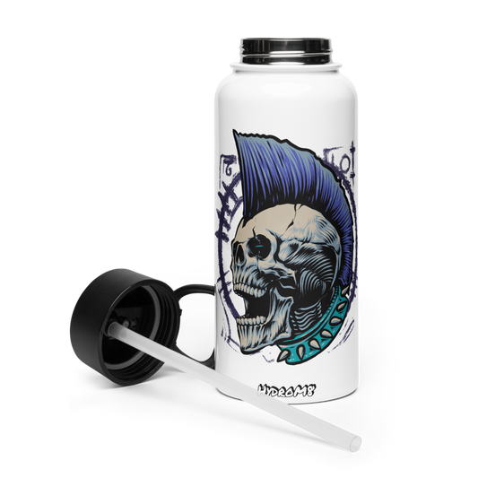 HydroM8 "Punk Skull" Nerūdijančio plieno vandens butelis su šiaudiniu dangteliu