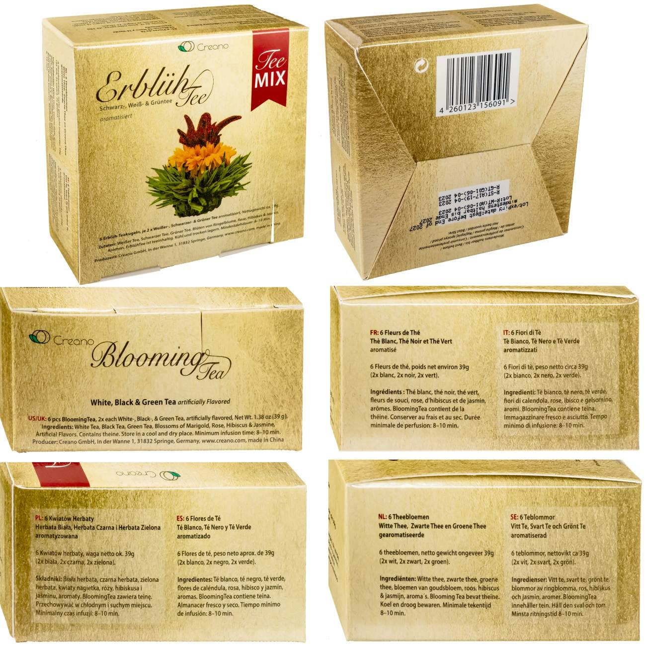 Creano Blooming Tea Mix – 6 Varieties of White, Green & Black Tea | Handcrafted Flowering Tea Gift Set